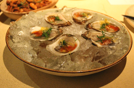 There’s more heat in the chilled local oysters on the half shell ($16) that get drizzled not just with shallot mignonette, but the restaurant’s barrel-aged hot sauce.
