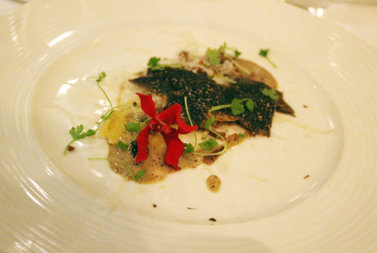Chef Donna’s salad of octopus, lobster and chickpeas with black truffle dressing. Yes, imagine hummus with truffles!
