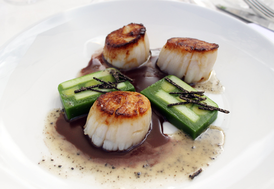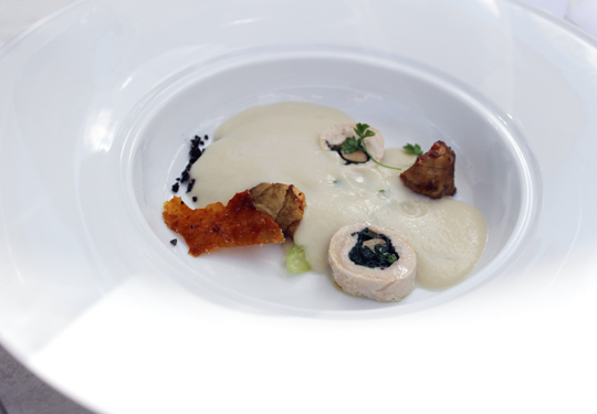 Chef Esnault’s butter-poached lobster, salsify, spinach and black truffle dish at the grand La Toque dinner.