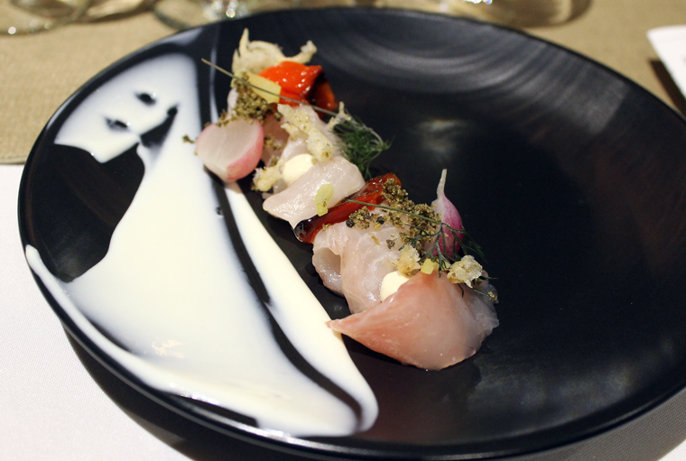 Jew explained that his training is half Italian and half Chinese, so he combined the two for his dish, using nama yuba (young, creamy yuba) to stand in for burrata.