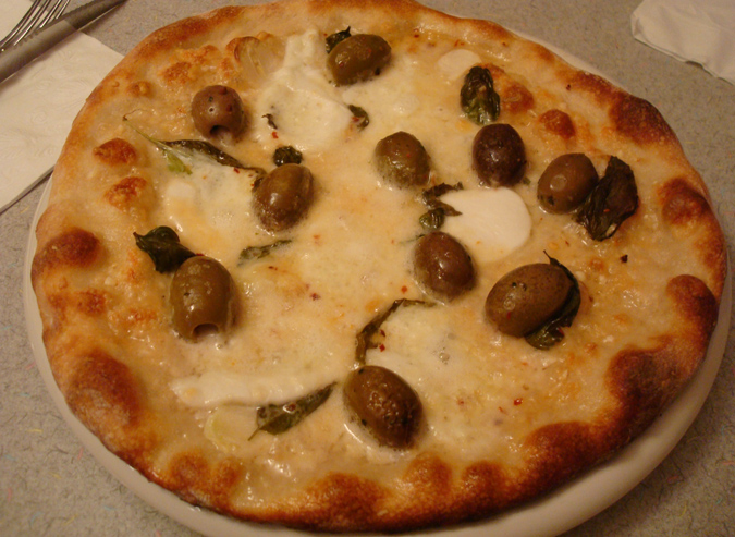 We added prosciutto di Parma ($4) to the pizza. It was laid over the top after the pizza was baked. Rightly so to keep the soft, drapey prosciutto from toughening from the heat. What I also appreciated was that the prosciutto was cut a hair thicker than normal, so that the slices held up under the residual heat from the pizza, remaining silky. You can tell a restaurant takes its pizza seriously when it takes that kind of extra step.