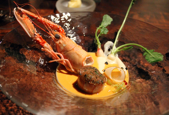Bright made a run to the airport bright and early that morning to pick up the main ingredient in Kreuther’s next dish: langoustines flown in live from Scotland. The body meat is finished with a smoky chorizo sauce. The teeniest radish and turnip, complete with their greens, are there to be dipped in the kohlrabi puree. Suck out the juices from the langoustine head and you’ll be rewarded with a warm towel from the server for your efforts.