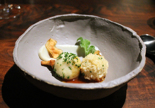 Skenes’ next dish looks like dessert with its head of cappuccino-like foam, but it’s not that at all. Not when it has beer, milk, bread and duck liver with an airy mousse-like texture. Take a taste and it’s a little sweet, a little savory, and almost coffee-toffee-like.