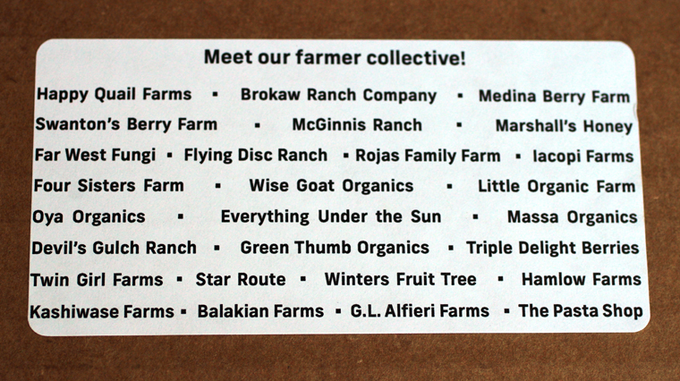 Each week, Andreas and his team put together a different Farm Box, made up of peak-produce from small local farmers who sell regularly at the Ferry Building and Menlo Park farmers markets.