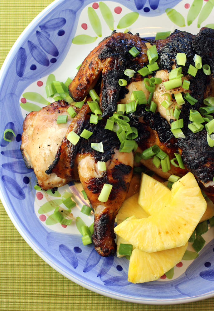 “Huli” means turn in Hawaiian, and that’s what you do with this chicken as it cooks on the grill. Just be sure to keep a close eye on the heat of your grill, as the sugar in the glaze will mean your chicken will char easily, as, ahem, my husband found out. Even if the skin gets rather ebony in parts, it will still taste fantastic.