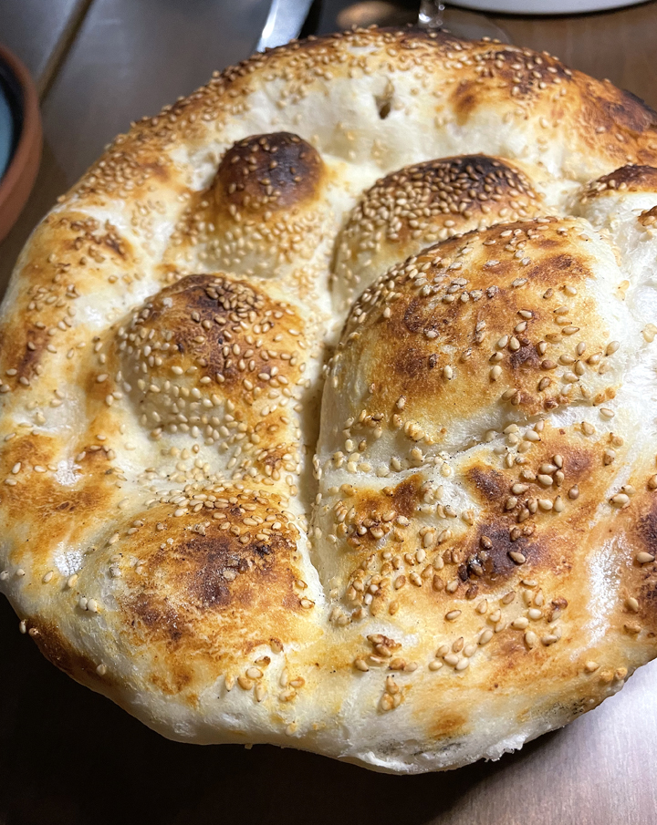 In no time, our entire tabletop was covered with assorted cold meze, including girit ($17), an addictive soft and creamy Turkish sheep’s milk cheese drizzled with olive oil, flecks of oregano, and vivid green toasted ground pistachios. Spread some on the warm bread, and prepare to swoon.