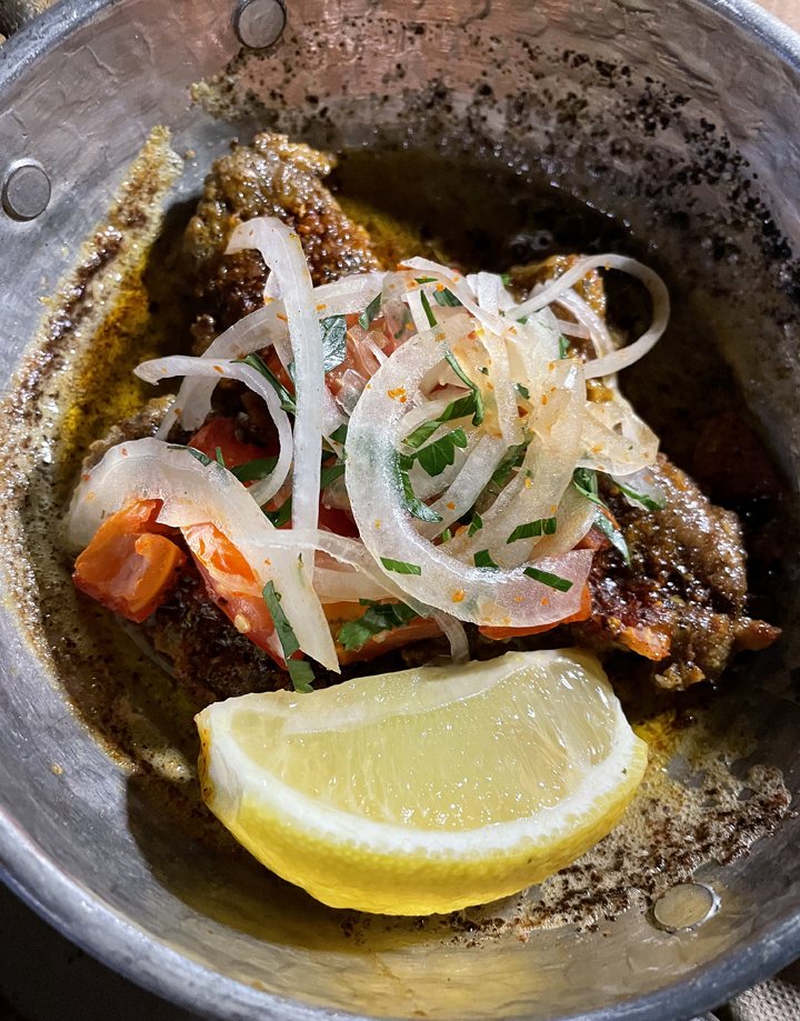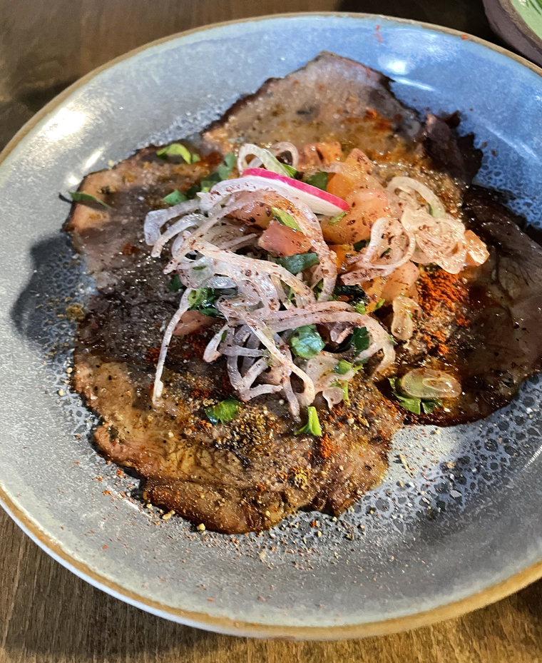 Beef tongue ($18) is smoked, then thinly sliced, and heaped with tomatoes, onions and fresh herbs for a dish that will remind you a little of Sunday roast beef — but Mediterranean-style.