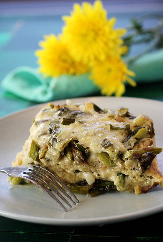 “Asparagus and Spring Allium Strata” combines my three most favorite spring ingredients: