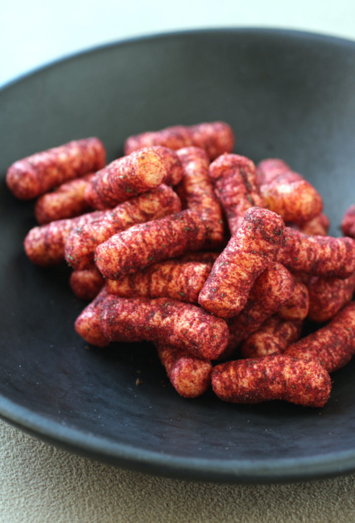 Turn-Up The Heat plant-based snack made of sorghum, flavored with beets and paprika — and made for kids.