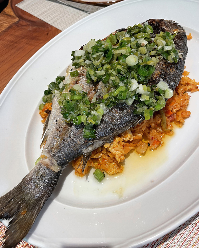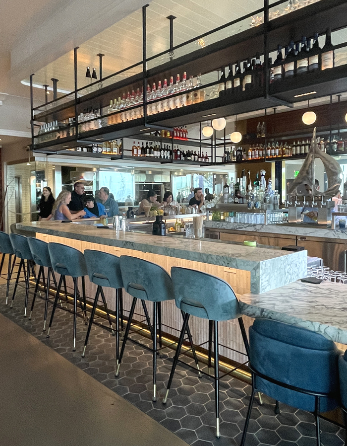 Admittedly, I’d never even been to this side of Redwood City until I joined friends a few weeks ago to dine at this new venture that opened in January. Finding the entrance can be a little confusing, as we witnessed a few people trying to enter through side patio doors. After parking, walk around to the back of the building that faces the marina with boats moored in the harbor. Look for the glass doors with the seahorse handles to find the front entrance.