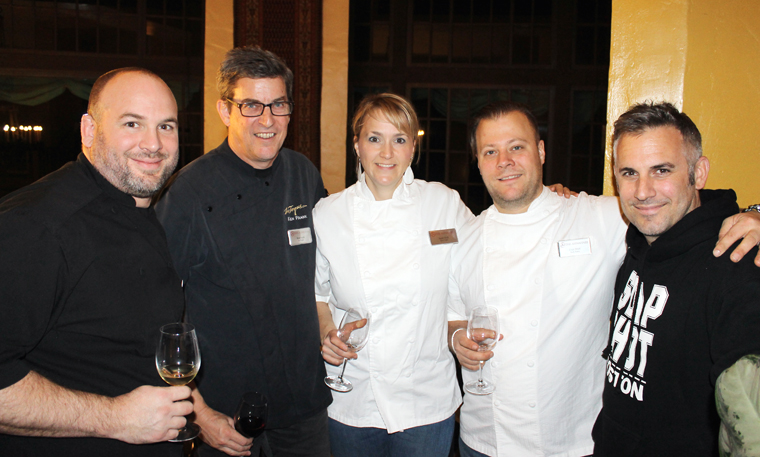 (L to R): Sous Chef Daniel Gomez Sanchez of La Toque, Executive Chef Ken Frank of La Toque, Sarah and Evan Rich of Rich Table, and David Bazirgan of Dirty Habit.
