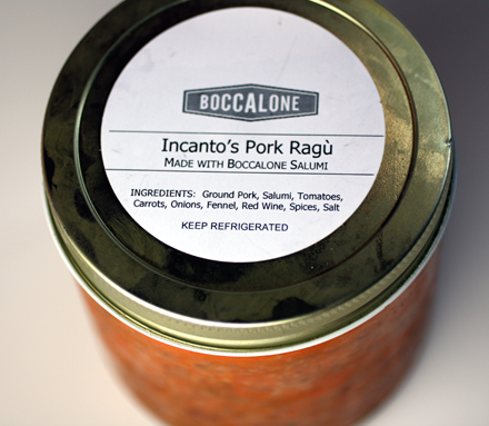 Boccalone now also sells jars of pork ragu, made with ground pork, bits of its Boccalone salumi, red wine, and fennel.