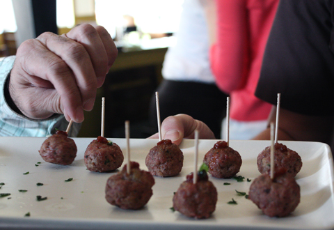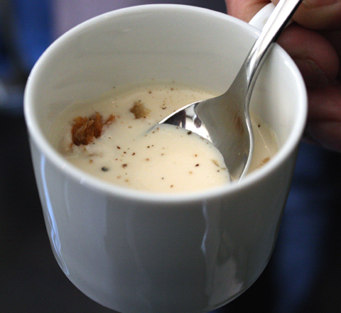 All the while, servers offered miniature tastes of some of the recipes from the book, including cream of cauliflower soup, toasted brioche dolloped with fig-balsamic jam, and sauteed shrimp with garlic.