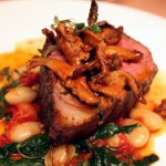 They both worked beautifully with the next two dishes: smoked Moulard duck breast with black currants and black olives; and Snake River Farms Kobe beef filet with roasted mushrooms, bacon, caramelized onions and a Cabarnet Sauvignon reduction sauce. The Padrone, especially, was magic with the Kobe.