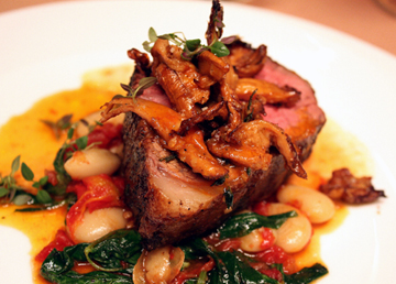 Next, the 2006 Estate Syrah, so wonderfully smooth and loamy, was paired with two different small dishes: a complex warm, local rabbit salad tossed with pistachios, wild mushrooms, chorizo and cranberries; and Snake River Farms’ Kurobuta pork wrapped in prosciutto and served with a sour cherry chutney. The smokey and tangy fruit flavors of both dishes were only heightened by the Syrah.