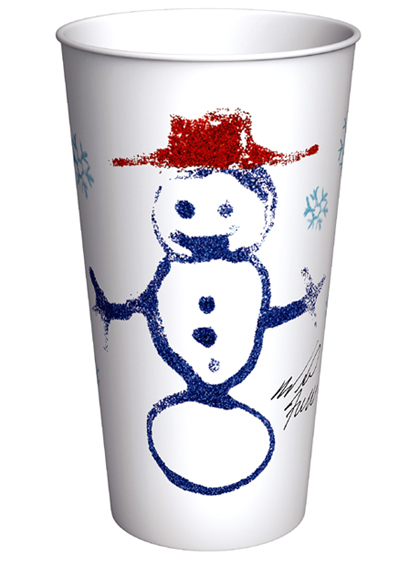 The zany actor is the fifth celebrity to design a coffee cup for 7-Eleven, joining the ranks of Snoop Dogg, John Cena, Jennifer Hudson and Nicole Ritchie. His snowman cup is for sale through Jan. 3 or until supplies last.