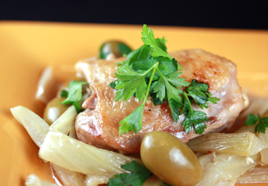 More Chicken: Ad Hoc’s Crispy Braised Chicken Thighs with Olives, Lemon and Fennel