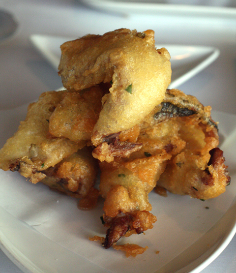 We started with one of the restaurant’s most popular appetizers: crispy local sardines ($10). A light, lacy, perfect tempura batter enveloped some of the meatiest, plumpest sardines I’d ever had. Fiery cayenne salt is offered on the side if you want to kick it up a notch.