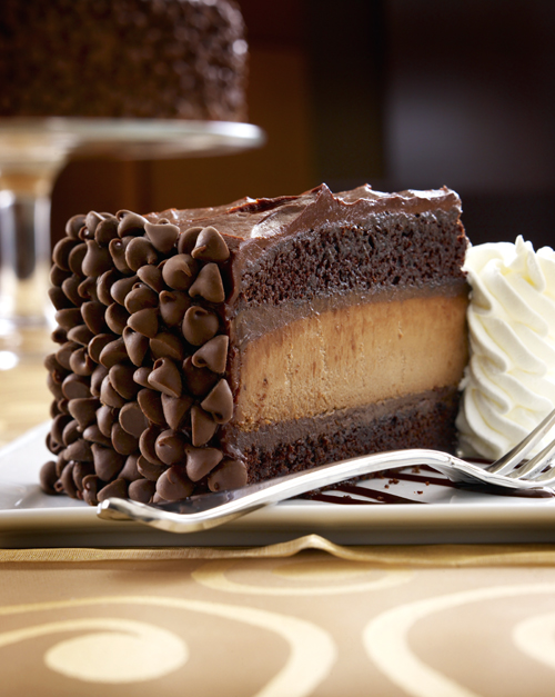 The newest flavor is the Hershey Chocolate Bar Cheesecake. Layers of chocolate cheesecake, chocolate cake, and ganache get stacked high, then finished with rich chocolate frosting and plenty of chocolate chips. It’s enough to make your teeth ache — but in the best of ways.