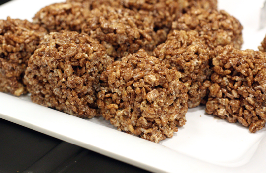 The day I visited training camp, the fare included a make-your-own sandwich station, a salad bar, a grill for burgers, two soups, bacon-wrapped bistro fillet with Burgundy wine balsamic reduction, grilled chicken with heirloom tomato relish, Jamaican jerk tilapia with tropical fruit salsa, mixed vegetables, tater tots, house-made salt and pepper potato chips, and Cocoa Pebbles Rice Krispie treats.