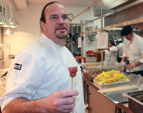Talk about a hungry crowd; it’s not uncommon for Chef Chad McWilliams to go through 30 pounds of egg whites and 200 pounds of chicken a day here, as he serves up to 250 people at a time.