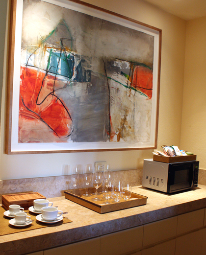At turn-down, soft robes are arrayed on your bed with matching slippers; along with a tray with chocolate-covered almonds, a lavender sachet, a carafe of filtered water, and towelettes that can be microwaved to warm them up for your added relaxation.