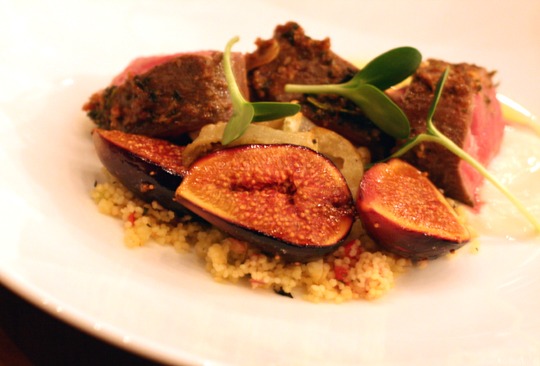 A main course of spiced lamb rib eye was incredibly tender and partnered with sweet Mission figs, yogurt, tabouleh and Nicoise olives.