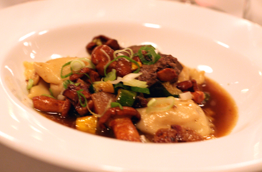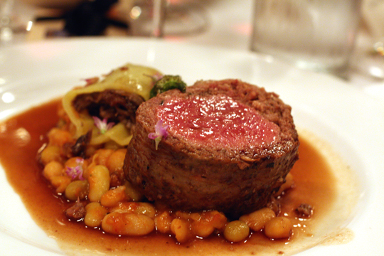 Dinner included a woodsy rabbit ravioli with bacon and chanterelle mushrooms, a beef rib eye roll with braised oxtail-stuffed peppers, a cheese course that showed off some of Oregon’s best artisan and farmstead ones, and a donut-like brioche Savarin with wild plum confiture and mascarpone mousse.