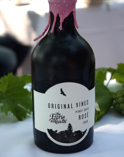 Another unforgettable sip was the 2008 Eyrie Vineyards Pinot Gris Vines Rosé, which was bottled in clay with a candy-pink wax seal. A delicate peach-salmon hue, it was crisp and acidic, with the flavor of apricots.