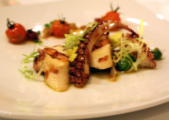 My second course was one of the best renditions of octopus I’ve ever had. When octopus is not cooked properly, it can have the unpleasant texture of pencil erasers. But when it’s handled with skill, it’s sublime — with the mouth-feel of a tender scallop. Litke’s version was pure pleasure to eat. Mediterranean octopus was grilled, lending a smoky flavor. A chorizo vinaigrette added a touch of heat and richness.