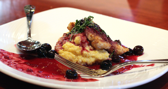 Timmy Baker's chicken with blueberry-Pinot Noir sauce and goat cheese polenta.