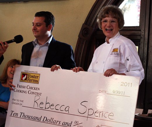 And the grand prize? That went to Spence of Vancouver, WA for her crispy chicken with oranges and avocado — a vibrant salad that had a wonderful fresh verve to it. Spence, who said she was speechless, was presented with a check for $10,000 plus a year’s supply of Foster Farm’s chicken.
