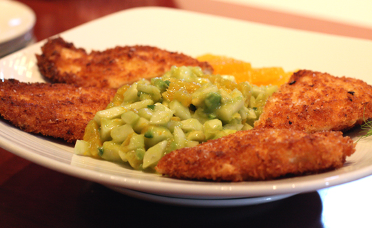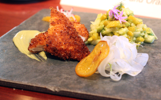 Rebecca Spence's winning panko chicken with fennel, avocado, and orange salad as plated by her.