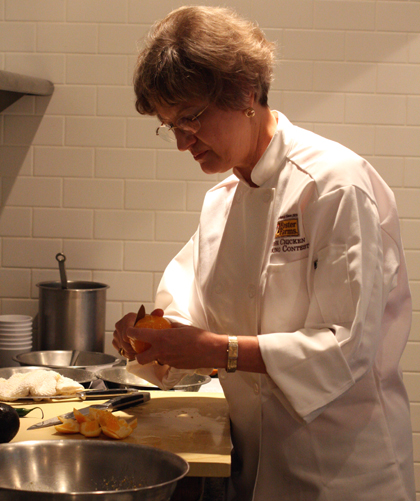 Rebecca Spence of Vancouver, WA preps navel oranges for her dish.