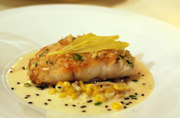 But Wong also can do simple very well, too. Ginger-crusted onaga (Pacific long-tail red snapper) was as close to perfection as you can get. It reminded me of Chinese-steamed fish, with its moist flesh and palate-tickling ginger — only taken up a notch. Its creamy miso-sesame sauce was the ideal complement. Corn shoots, tender and yellow, added a unique anise-tarragon note.