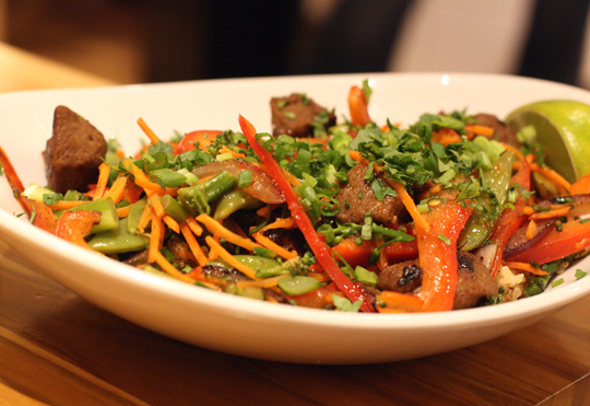 “Tal’s Ancient Grain Bowl” ($11.99) is a beautiful mix of quinoa and whole-grain farro with crisp-tender veggies. Stir-fried “Gardein’ ” adds protein. It’s LYFE’s answer to a meat substitute, a proprietary blend of vegetables, soy and ancient grains. The texture is sturdy yet spongy, and rather pleasantly mushroom-like. “Gardein’ ” can be substituted in many of the dishes for a vegetarian alternative.