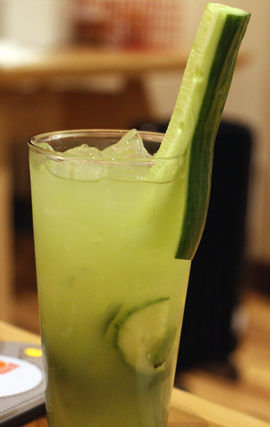 Whatever you do, start with a refreshing “Cucumber-Mint Cooler” ($2.99). It’s like spa water, but muddled with cucumber pulp to give it more flavor and body.