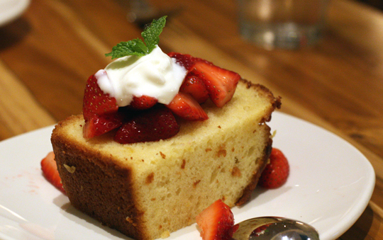 Lemon pound cake ($3.99) is quite moist, with a dollop of Greek yogurt and sliced fruit over the top.