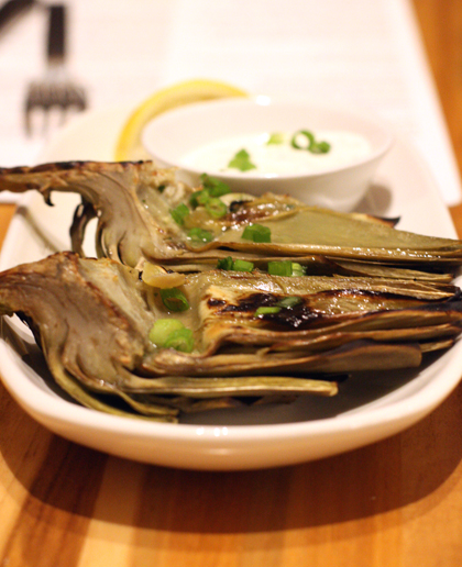 Grilled artichokes with lemon aioli ($3.99) brings two artichoke halves, expertly trimmed and nicely charred with a velvety, bright-tasting mayo sauce.