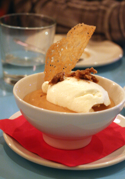 We ended with a bowl of butterscotch pudding ($7) with chantilly cream. It had a wonderful deep burnt-caramel flavor, but a rather thin body.