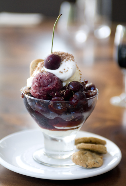 It’s been too long since I’ve been away and I come back to cherries – my favorite – and that amazing Sundae! Oh my! And the cherry foie gras is fascinating! Great post!