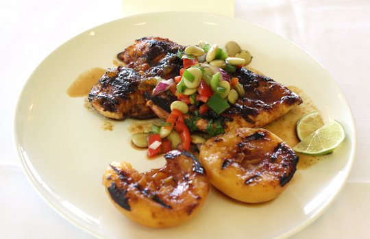 LaRochelle's "Glazed Peach-Chipotle Chicken & Lima Bean Salsa."