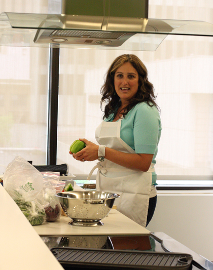 Naylet Larochelle gets going on the lima bean salsa for her chicken dish.