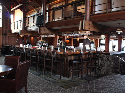 With plenty of wood and a craggy rock wall, the dining room continues with that rustic vibe. It’s fronted by a wall of windows, where you can watch the sunset at dinnertime.