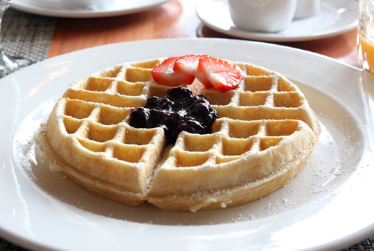 The next morning, return to the dining room for breakfast, including a satisfying corned beef hash with perfectly poached eggs ($14.95) and an airy Belgium waffle ($10) with a smear of berry compote, whipped butter and maple syrup.