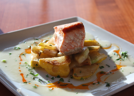 I also enjoyed a petite portion of that day’s fish, King salmon in a citrus beurre blanc ($13), which was nicely pink inside and seared beautifully on top.