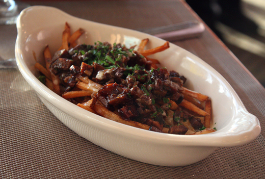In a nod to a French chef he once worked with, St. Clair offers a riff on poutine ($9). Only his version of French fries comes smothered with a rich braised beef. It’s so hearty that it’s practically a meal on its own. St. Clair jokes that it’s known at the bar as the “man dish.”