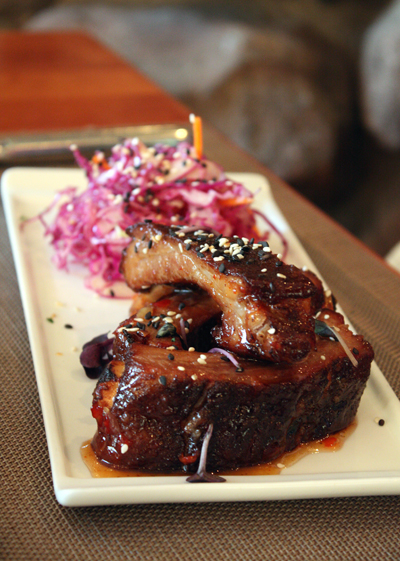 Braised short ribs ($16/$28) also have a sticky glaze, but this time with five-spice and hoisin sauce.