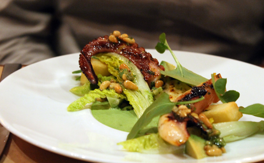Spanish octopus ($18)Â is grilled, leaving it smoky and wonderfully tender. Little Gem lettuce adds a fresh crispness that plays off buttery avocado, peppery watercress and creamy fingerling potatoes.