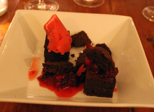 For dessert, the Gateau Susie arrived as cubes of a brownie-like chocolate cake with cranberry compote. A scoop of fragrant hibiscus sorbet added a lightness to this rich send-off. Even now, I still marvel that meal was all of $29. Unbelievable.